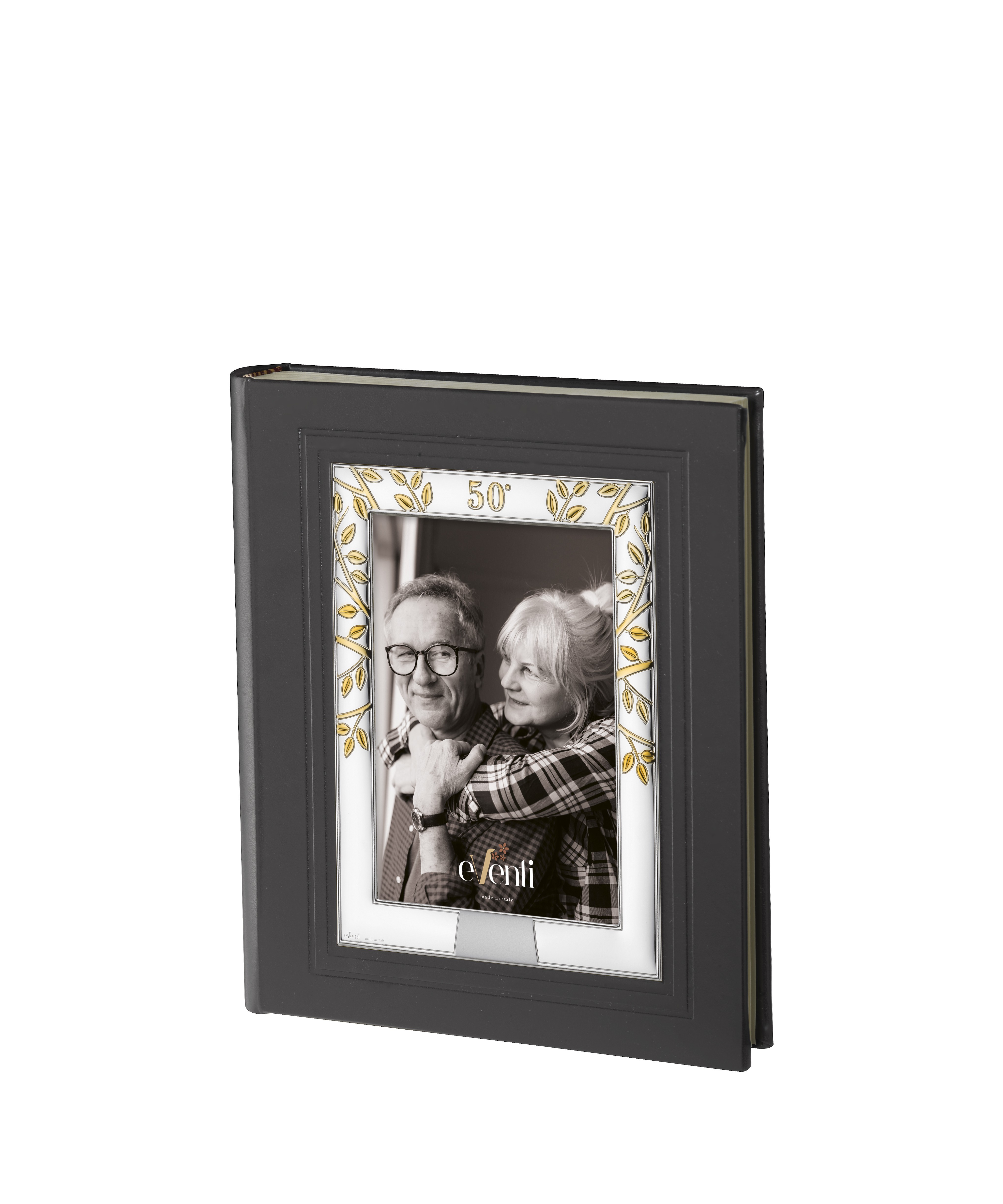 Precioso Album Marco fotos personalizado ext. 50 aniversario 24x30 Personalizado para Bodas de Oro, decorado con aplicación en plata Bilaminada de Primera Ley 925.