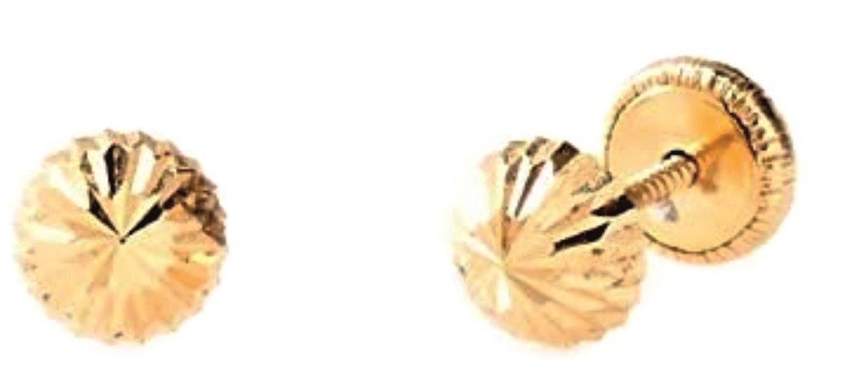 Pendientes en oro de 18 quilates, media bola de 5mm. Cierre de tuerca.