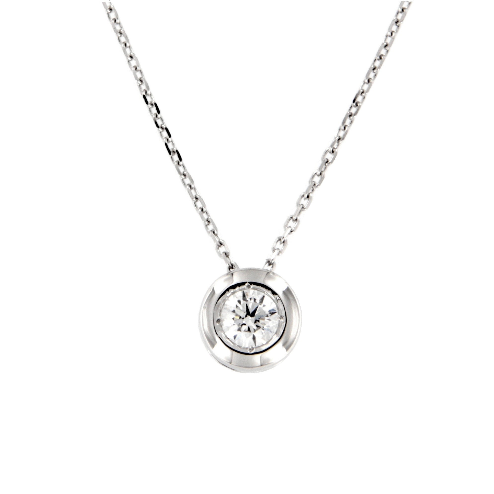 Colgante Chatón de 6 mm. con Cadena de 45 cm Fabricado en Oro Blanco 18 kt y Engastado con un Diamante Natural en Talla Brillante H SI de 0,18 Quilates. Disponible en Pendientes.