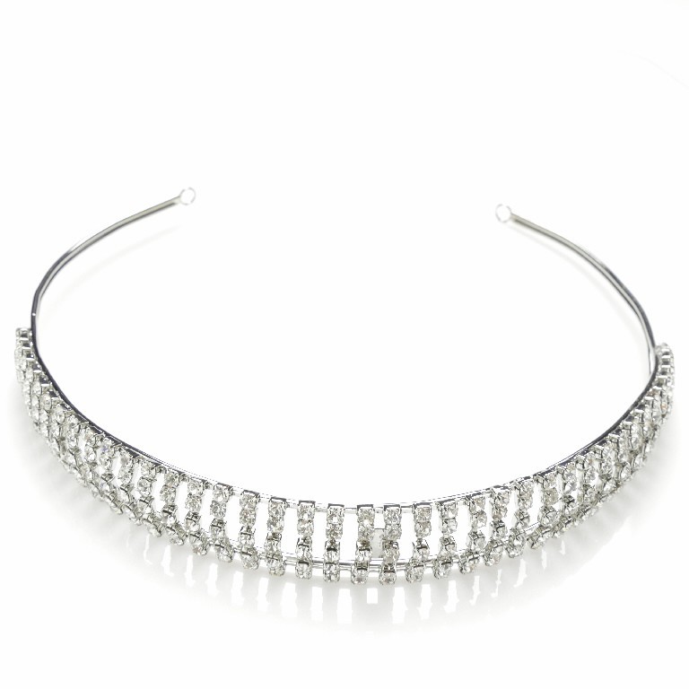 Diadema para novia con strass, en metal y cristales, con un diseño elegante de barras paralelas, de 21 mm en su parte más ancha. De la prestigiosa casa "Cano" proveedora de complementos a la serie de televisión "Seis hermanas".