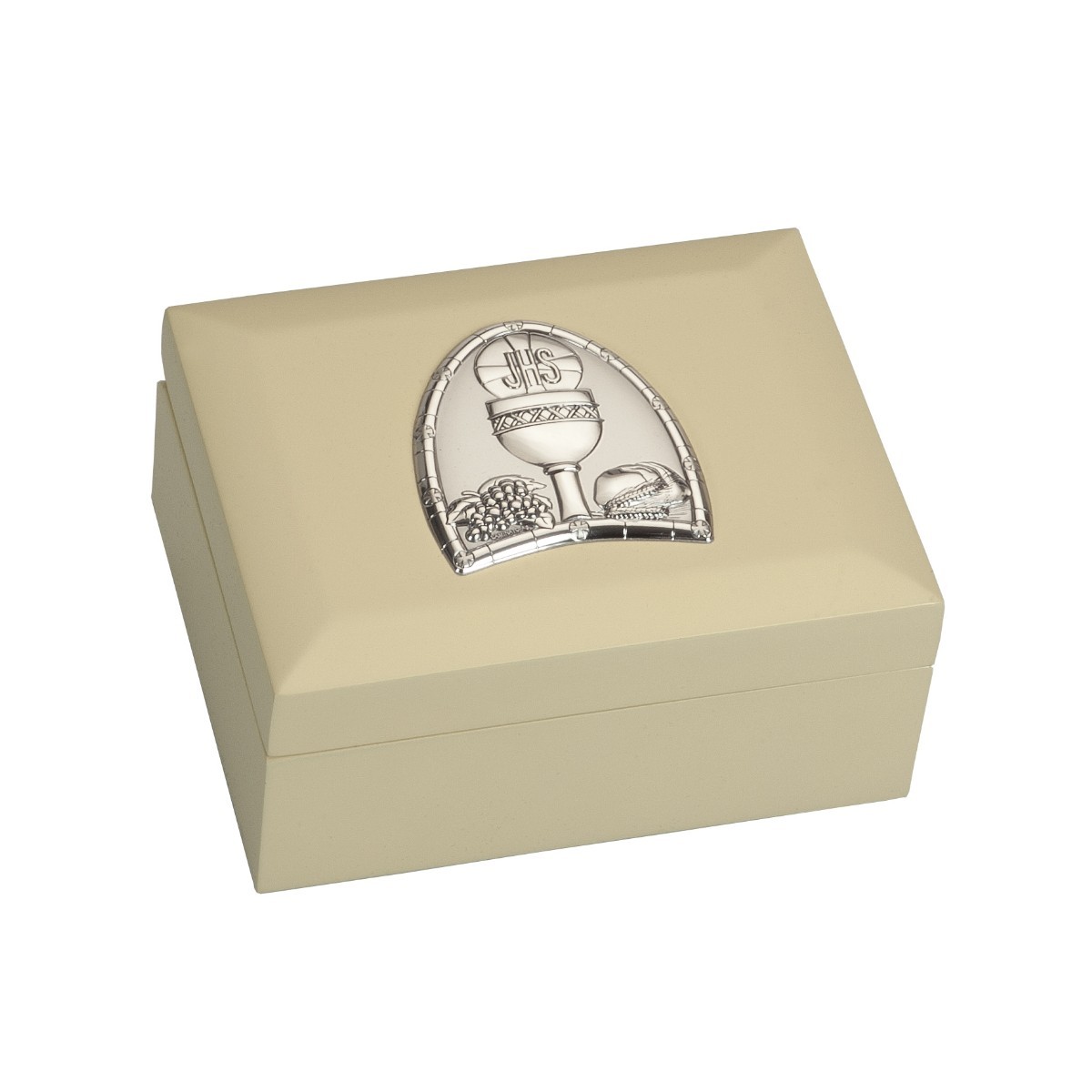 Joyero comunion 14x11x5 personalizado fabricado en plata bilaminada de primera ley 925.