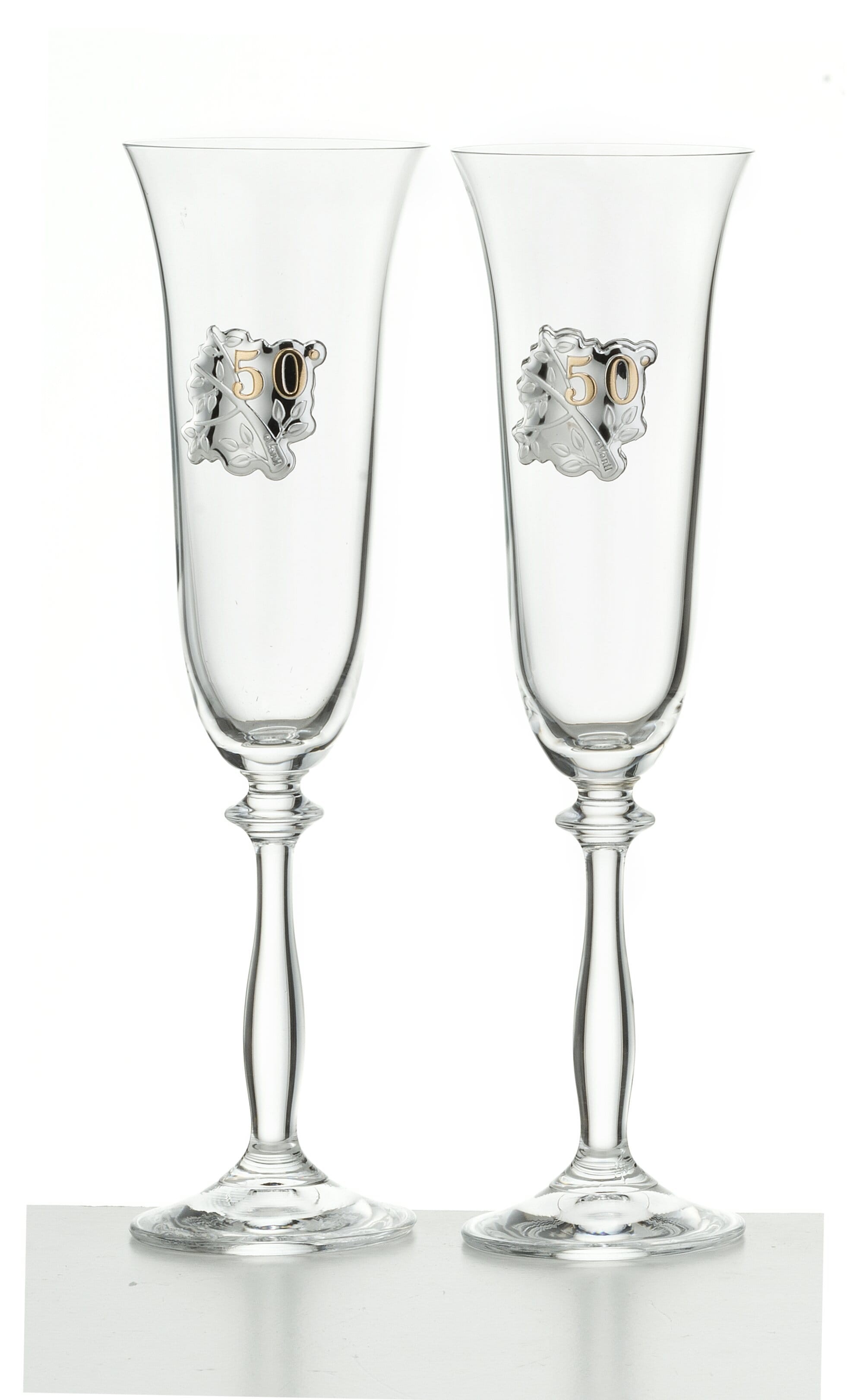 Precioso y elegante Copas 50 aniv. Personalizadas Bodas Oro.
