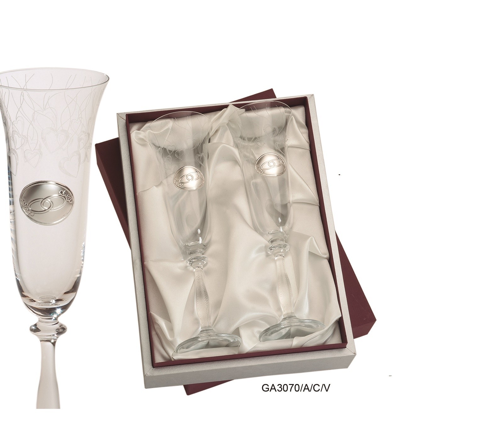Precioso y elegante Estuche copas corazones 50 aniv. Personalizadas Bodas Oro.