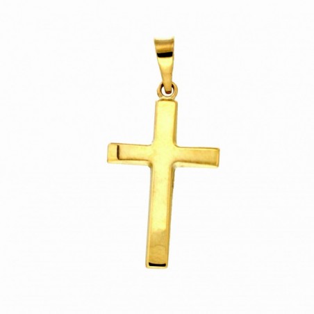 Cruz sin Cristo de Tubo Redondo de 3 mm. Medida 30 x 18 mm. Fabricada en Oro amarillo 18kt. Acabado con Tapones de 3,3 mm.