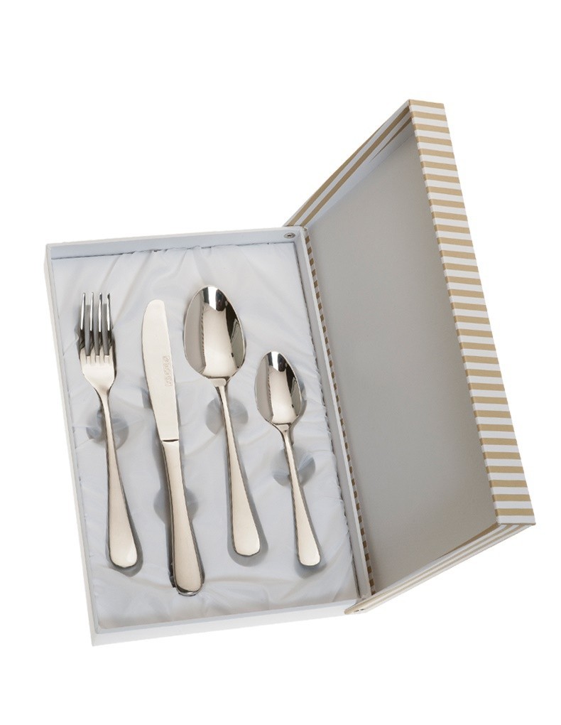 Estuche cubiertos 4 piezas beige Personalizados. Regalo perfecto para bautizos, comuniones, cumpleaños o celebraciones infantiles.