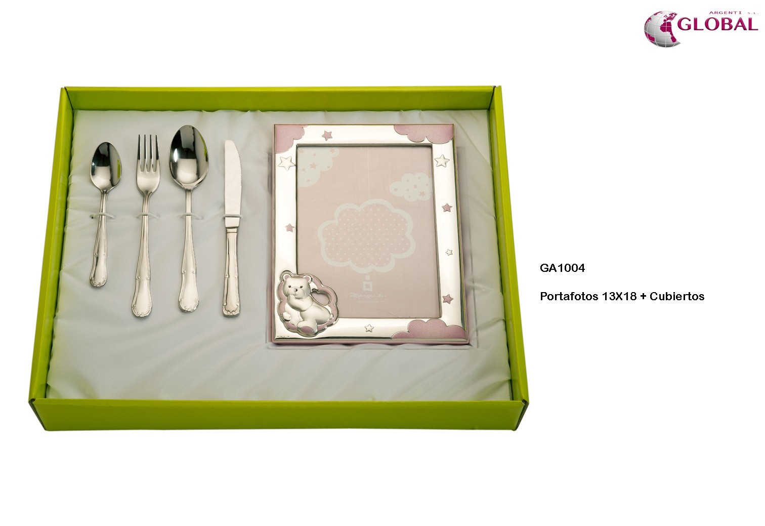 Set marco fotos personalizado celeste 13x18 y juego cubiertos 4pcs personalizados
