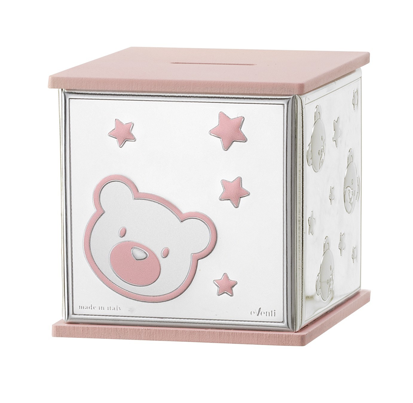Hucha oso estrella celeste personalizado en plata bilaminada