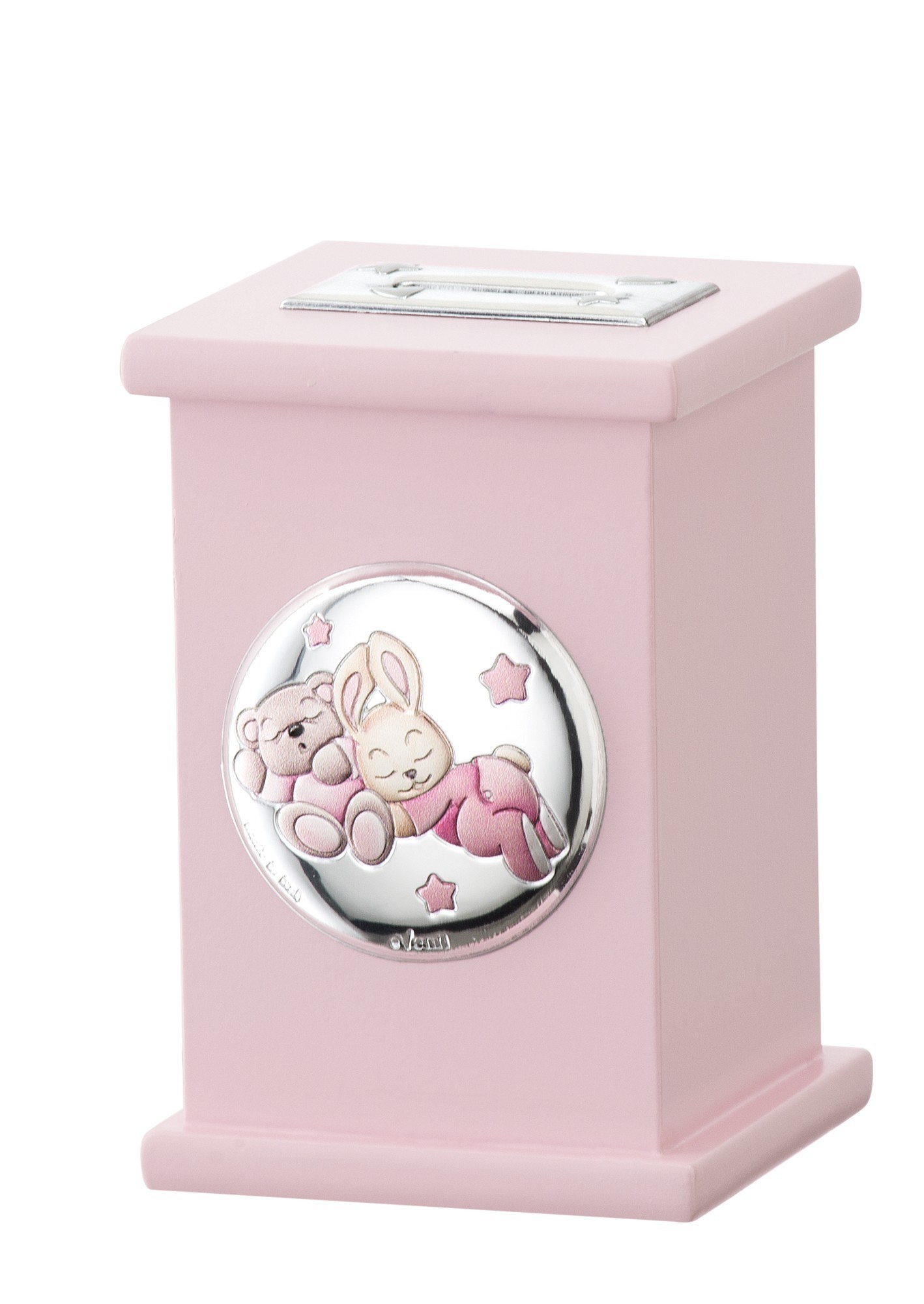 Hucha musical oso conejo rosa personalizado en plata bilaminada