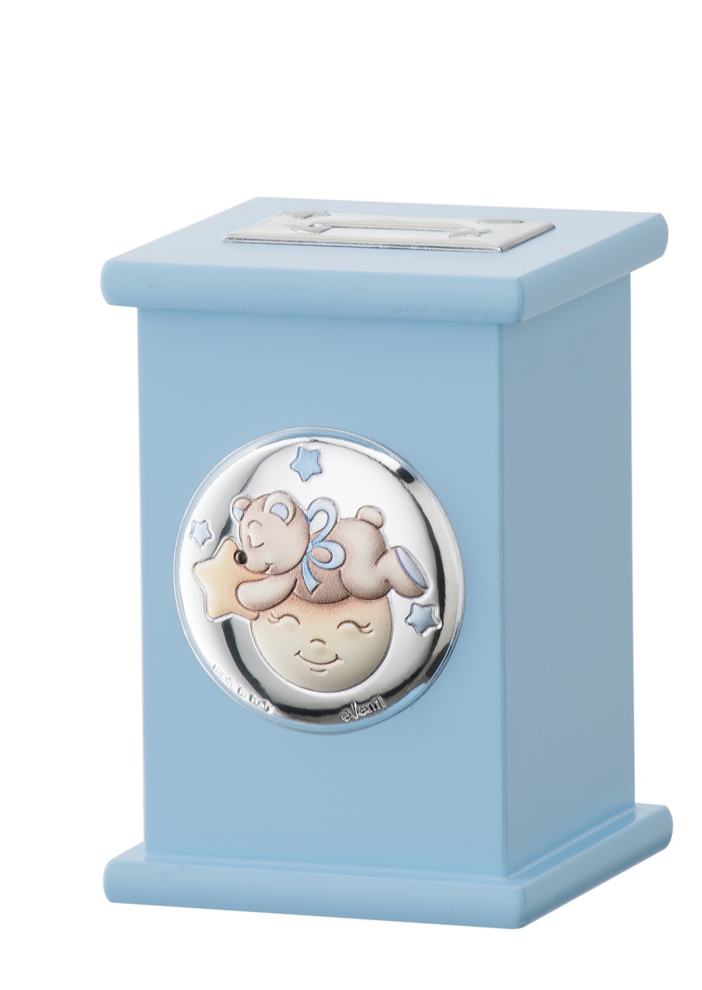 Hucha musical oso luna rosa personalizado en plata bilaminada