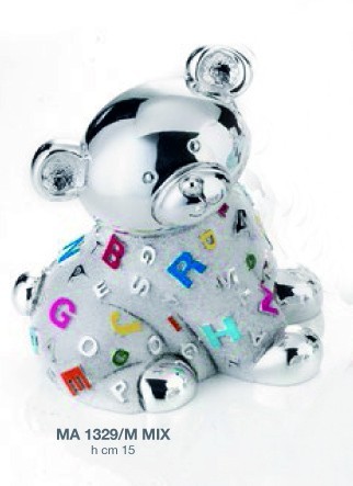 Hucha oso 15 cms letras colores personalizado en plata bilaminada