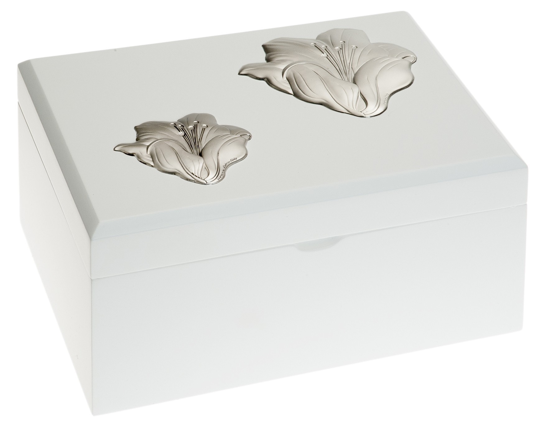 Joyero musical 20x15x10 blanco adornos plata bilaminada