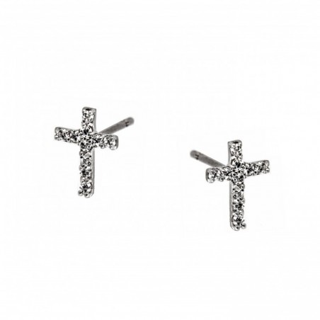Pendientes de Cruz de 7 x 5,5 mm Fabricados en Oro Blanco 18 kt con Cierre de Presión y Engastados en Garrra con Circonitas.