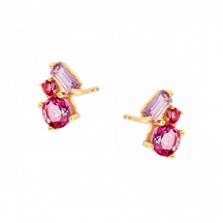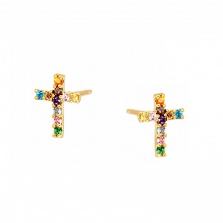 PENDIENTES CRUZ CIRCONITAS ORO BLANCO