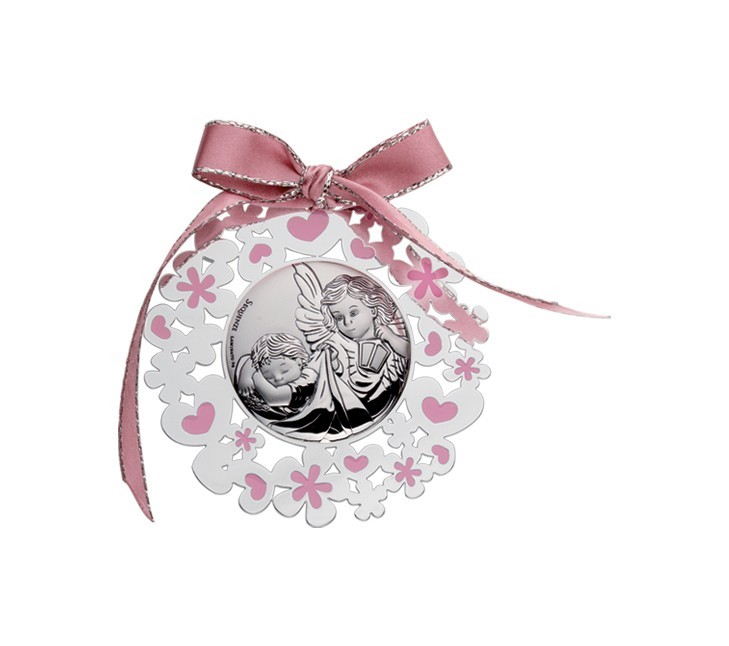Medallon angel guarda esmalt. rosa 6 cms
