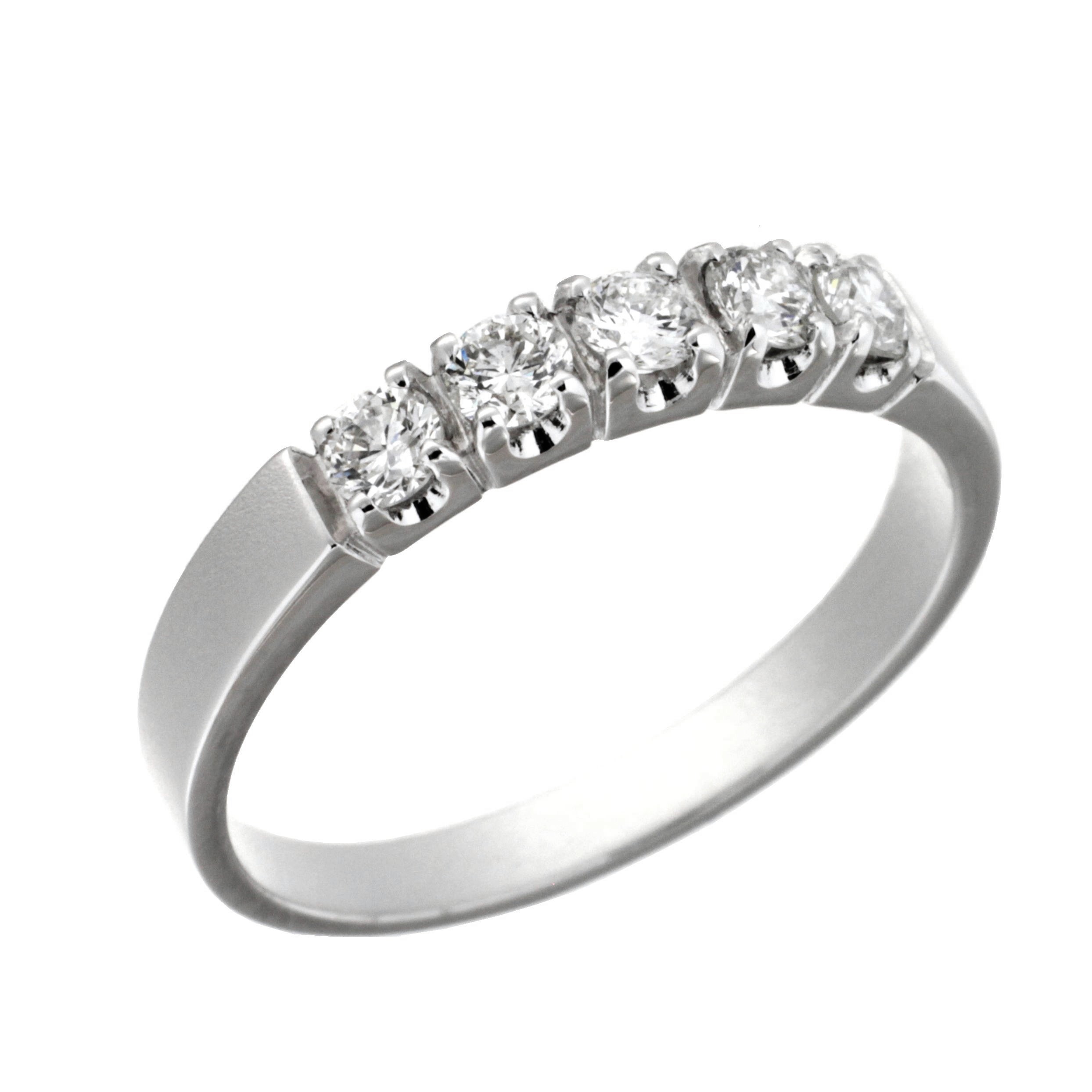 Sortija Media Alianza Fabricada en Oro Blanco 18 kt. Engastada en Garras con 5 Diamantes Naturales Talla Brillante H SI 0,39 Quilates