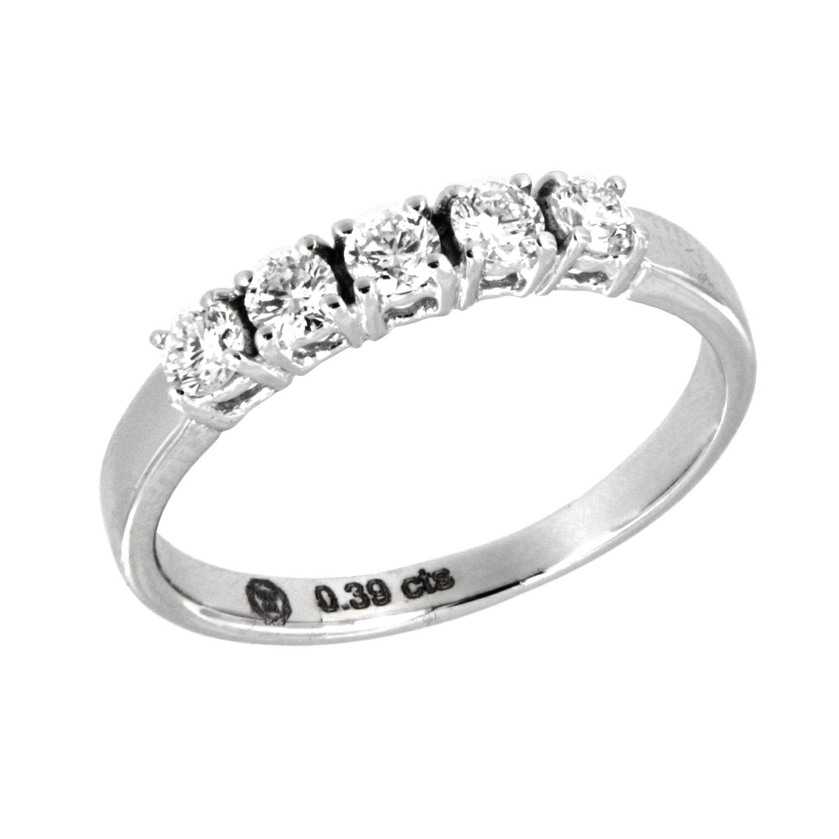 Sortija Media Alianza Fabricada en Oro Blanco 18 kt. Engastada en Garras con 5 Diamantes Naturales Talla Brillante H SI 0,39 Quilates