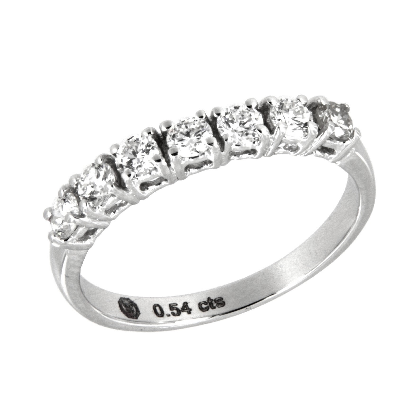 Sortija Media Alianza Fabricada en Oro Blanco 18 kt. Engastada en Garras con 7 Diamantes Naturales Talla Brillante H SI 0,54 Quilates