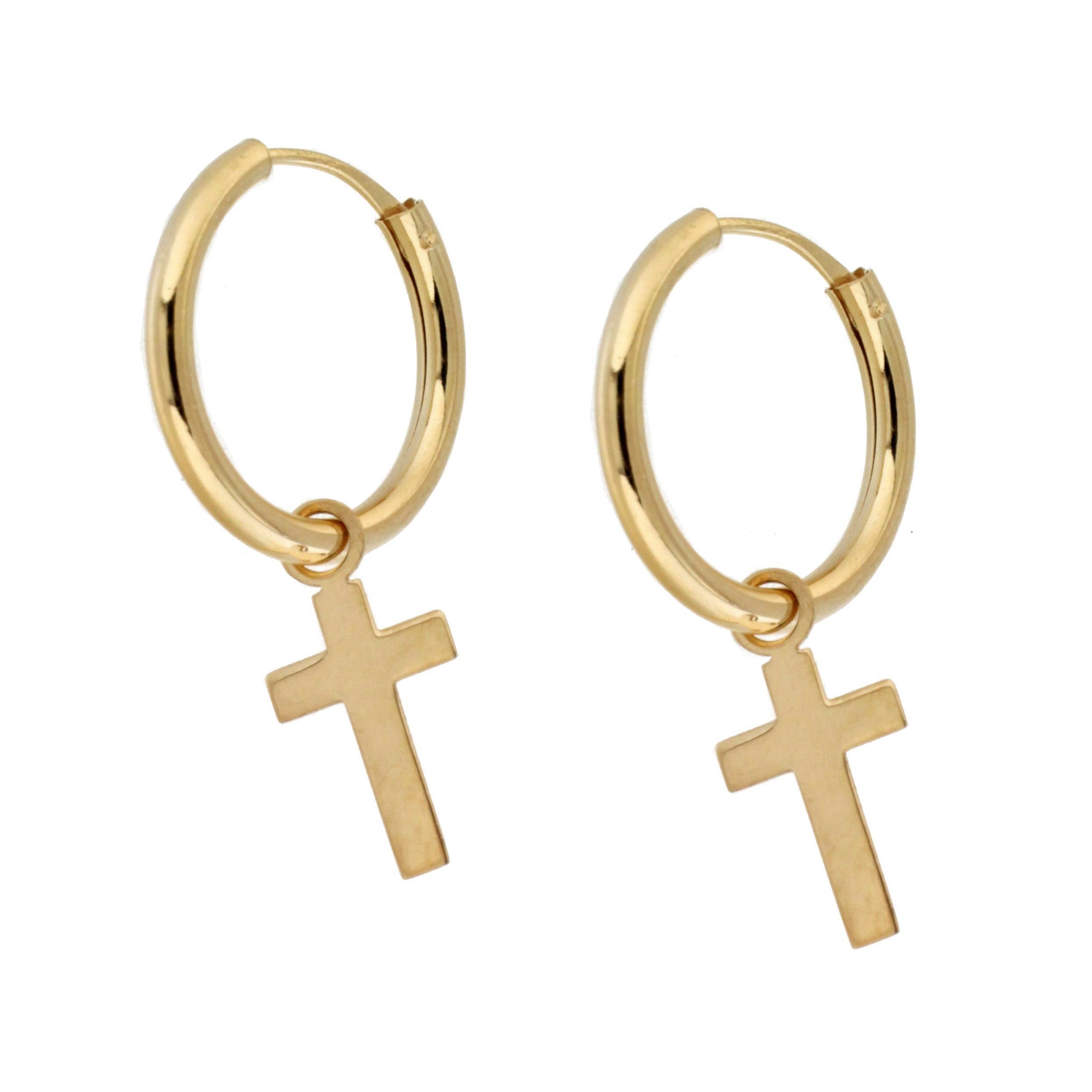 Preciosos Pendientes aro cruz Oro 18K [35-3033-CR-P], fabricados en su totalidad por maestros artesanos en Oro de 18 quilates garantizado.