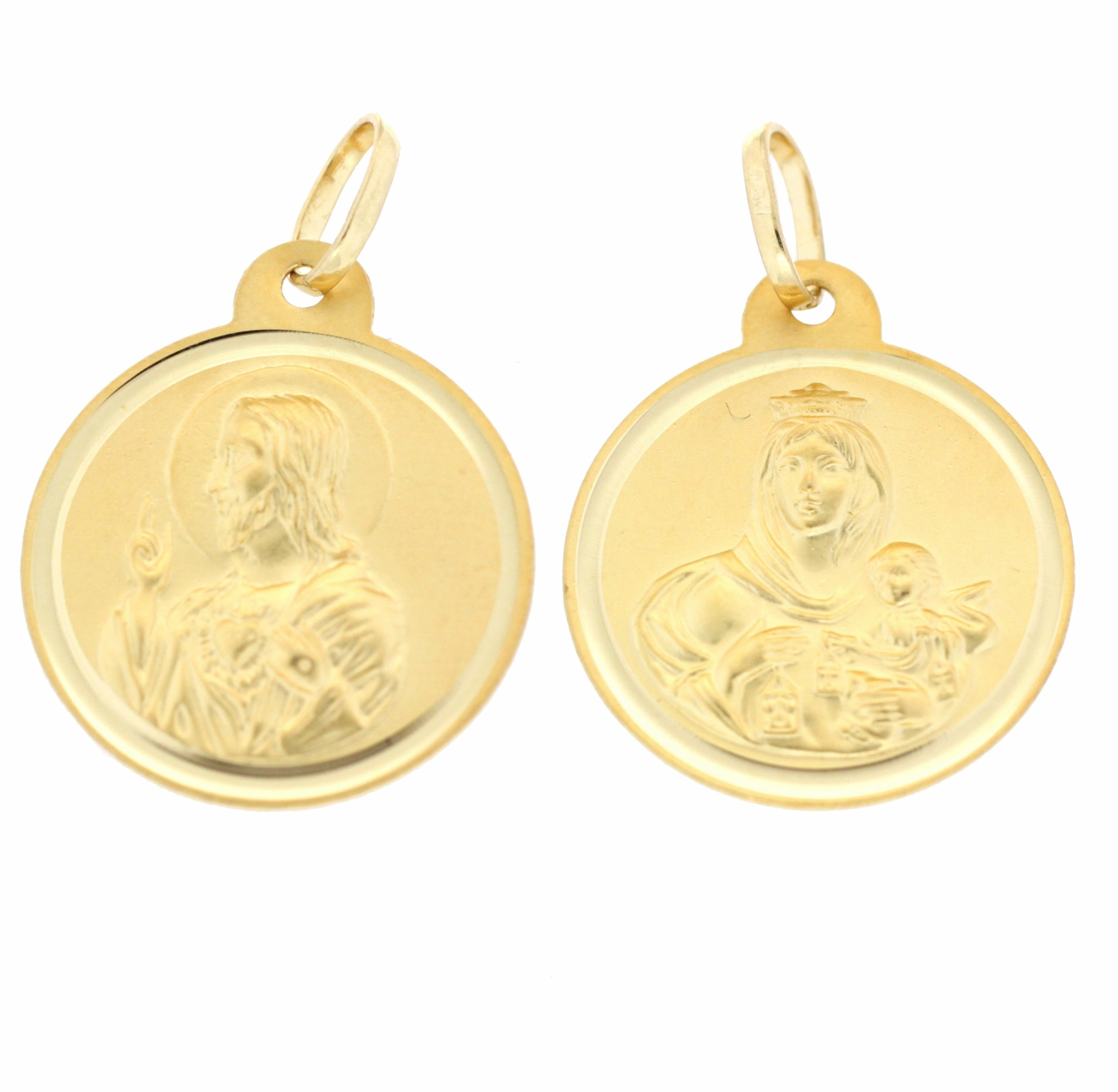 Preciosa Medalla escapulario con bisel Oro 18K [21-5003-120], fabricada en su totalidad por maestros artesanos en Oro de 18 quilates.