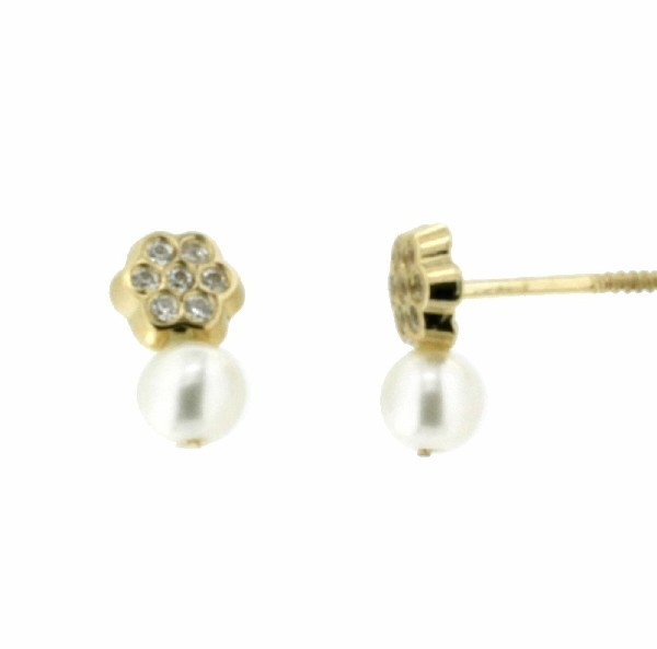 Pendientes perla oro amarillo 18K [27-7486P-P]
