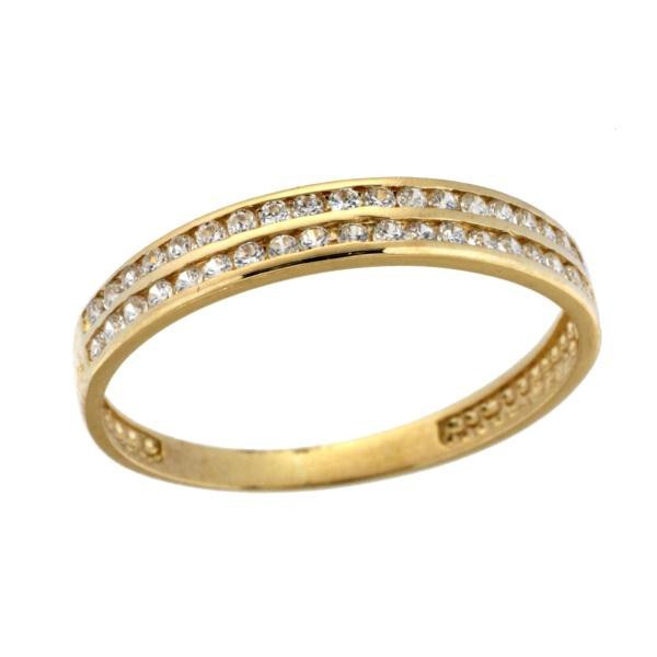 Anillo en oro macizo de 18 quilates con doble carril de circonitas. Mide de ancho 3mm.