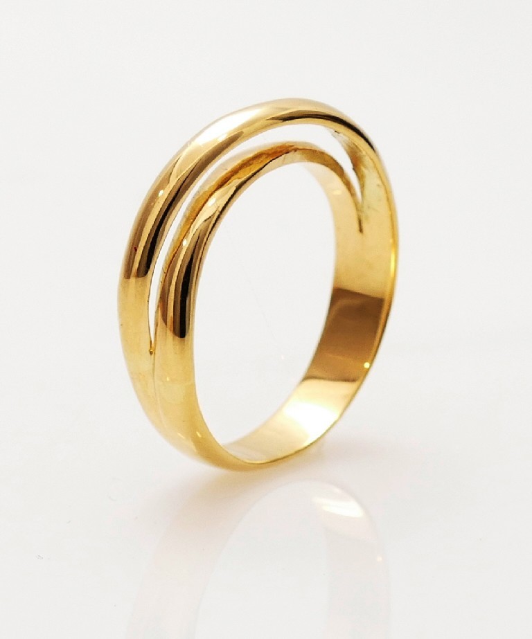 Anillo de oro de 18 quilates de dos aros superpuestos de 3mm de ancho, macizo realizado en nuestro taller a petición del cliente.