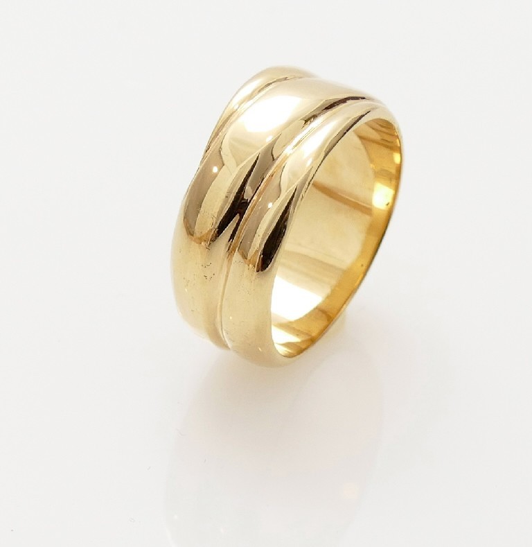 Anillo de oro amarillo de 18 quilates macizo realizado a petición del cliente. Este aportó loa 9,5gramos necesarios para realizarlo por lo que solo abonó el precio de la mano de obra. Damos forma a los sueños creando tesoros personales.