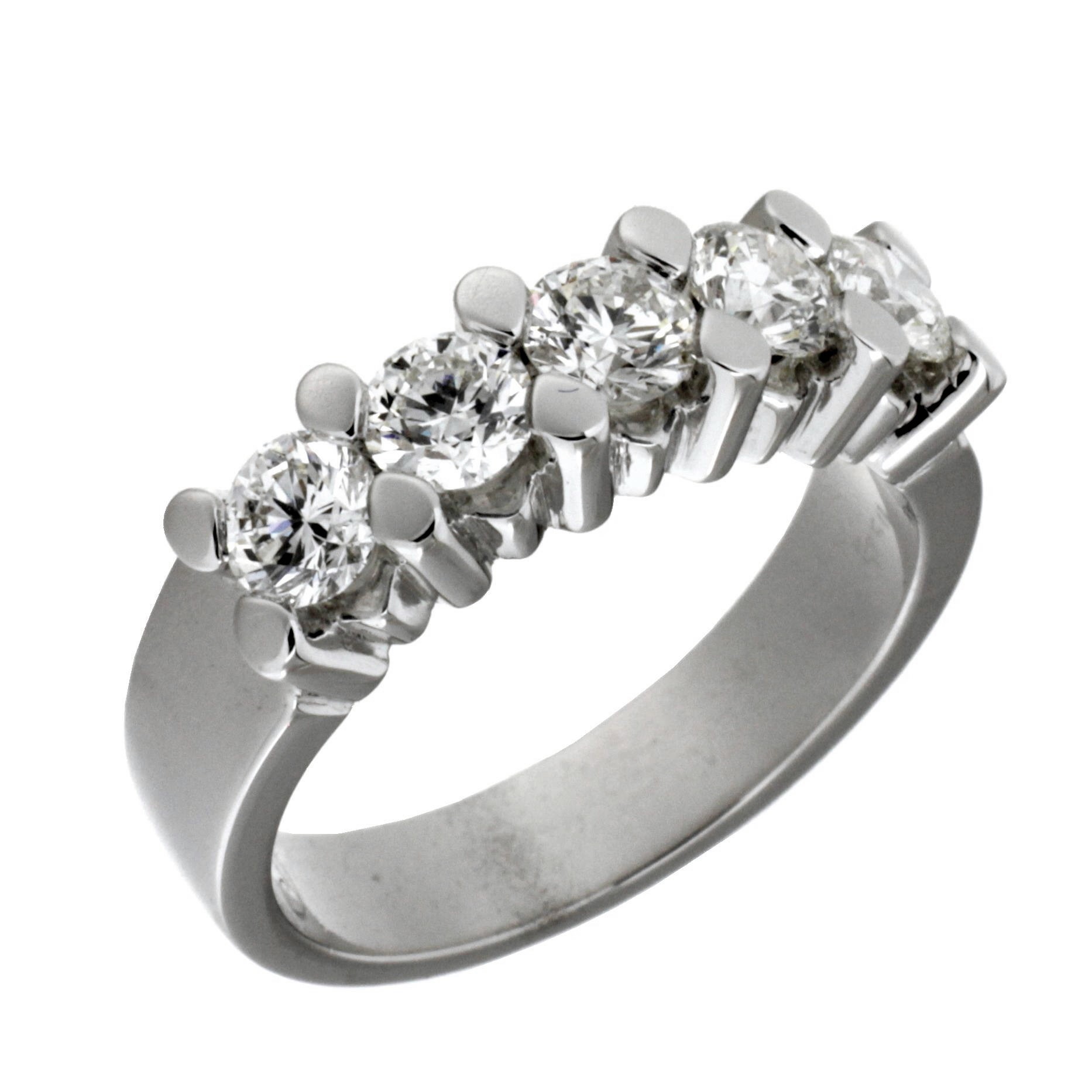 Sortija Hecha a Mano por Artesanos Joyeros. Media Alianza Garras con 5 Diamantes Naturales Talla Brillante HVS 1,35 Quilates