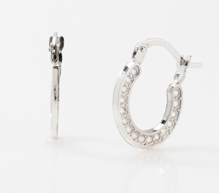 Pendientes con diseño inspirado en la antigua Roma. Oro blanco de 18 quilates con circonitas en el lateral, miden 15mm y llevan cierre italiano.