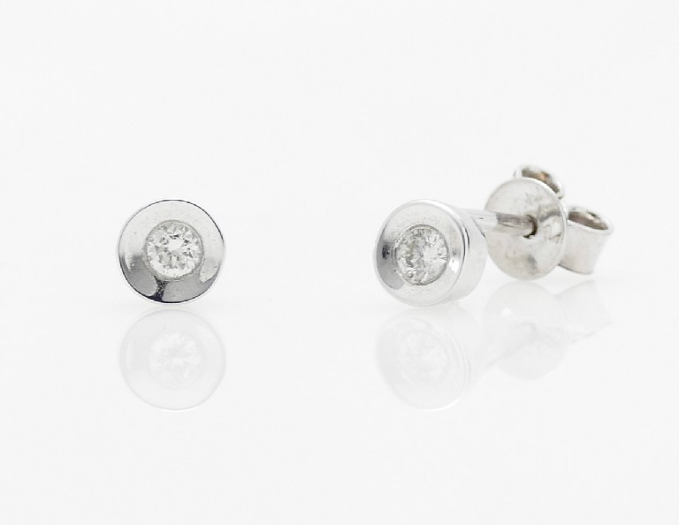Pequeños, pero con presencia, estos pendientes dan un giro al clásico chatón de diamante con un diseño más lineal. La zona importante del diamante talla brillante va ligeramente hundida para que este se vea reflejado en el metal y realce su brillo. Miden 5mm de diámetro y son de cierre de presión.