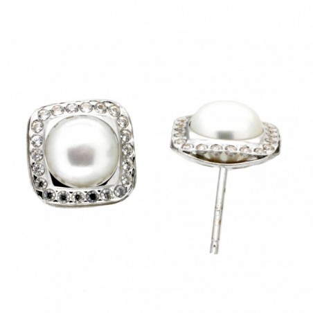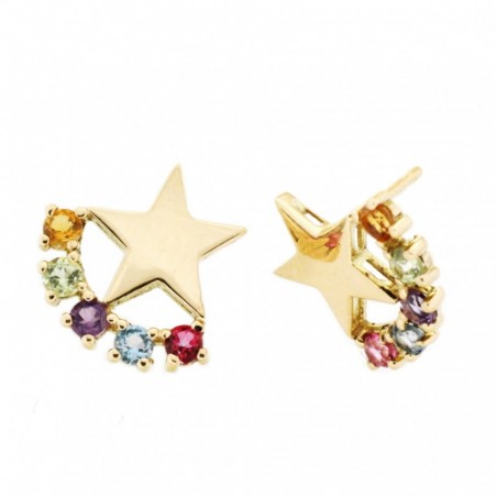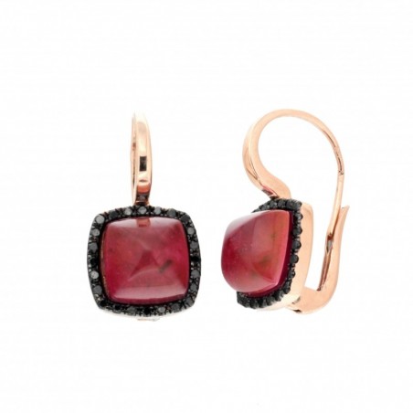 Pendientes de Aro de Tubo Cuadrado de 12 x 1 mm con dos Esmeraldas Naturales de 3 mm
