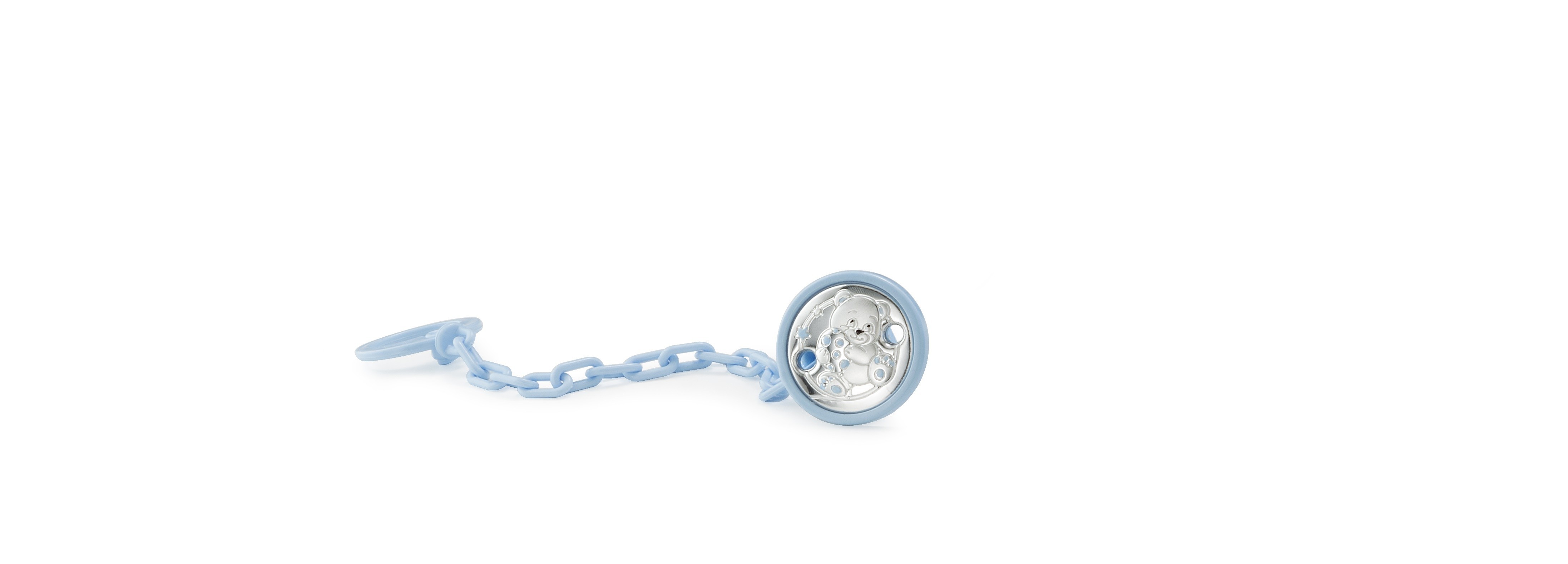 Pinza chupete con decoración mediante aplicación en Plata Bilaminada de 1ª Ley 925.