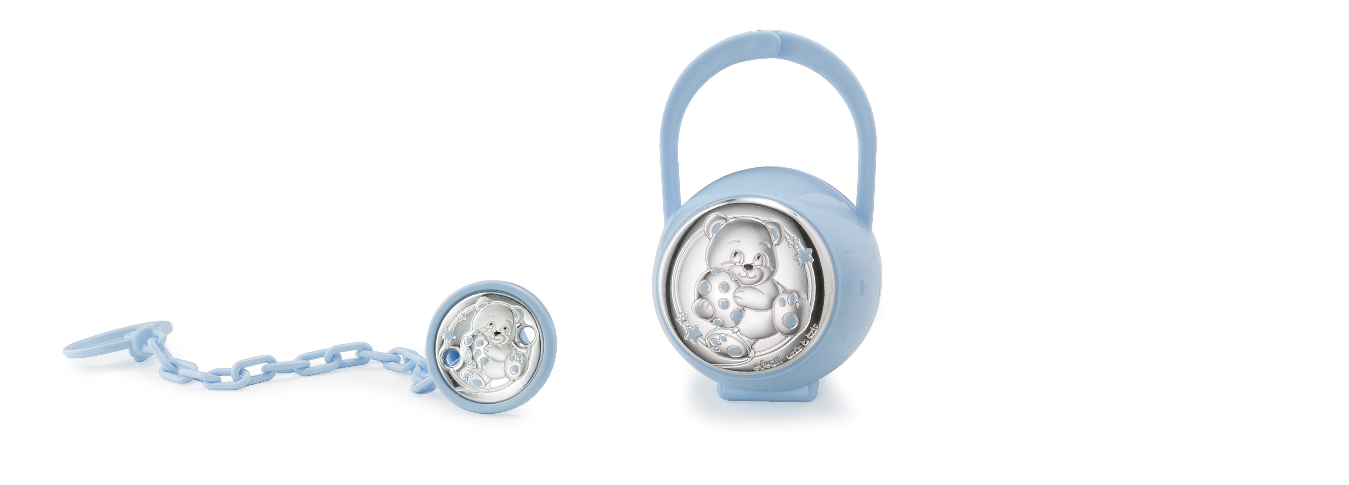 Pinza chupete con decoración mediante aplicación en Plata Bilaminada de 1ª Ley 925.