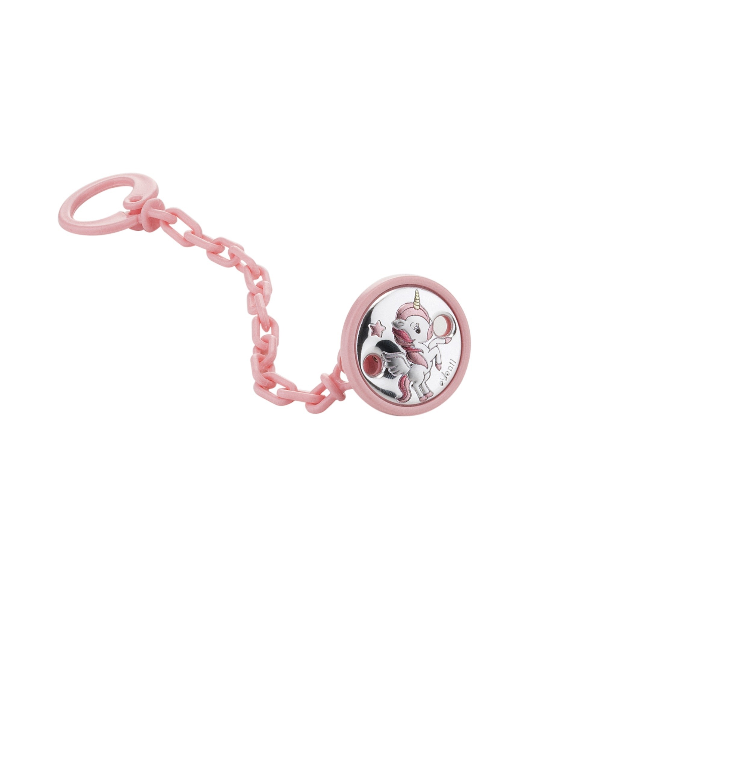 Pinza chupete con decoración mediante aplicación en Plata Bilaminada de 1ª Ley 925.