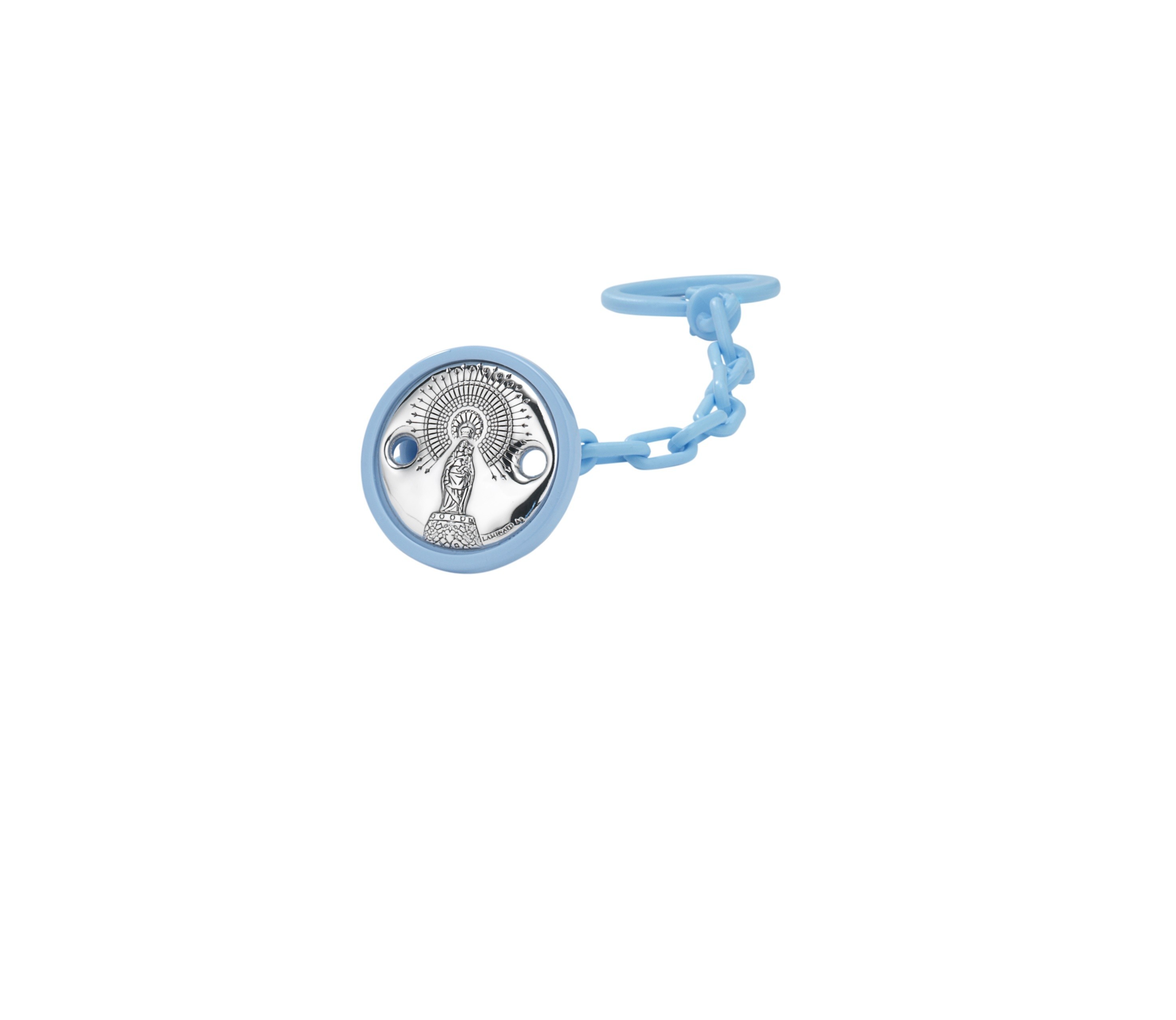 Pinza chupete virgen pilar redonda blanca con Plata.