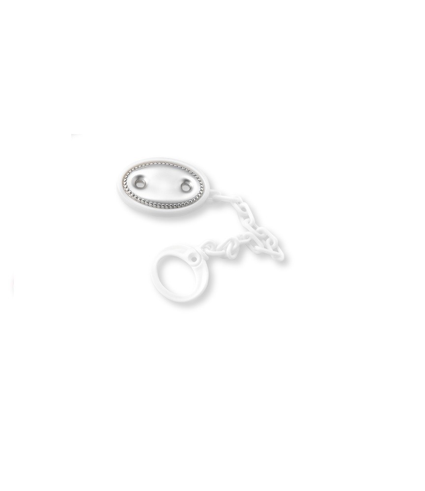 Pinza para chupete con cadena mordible de seguridad para el bebé.