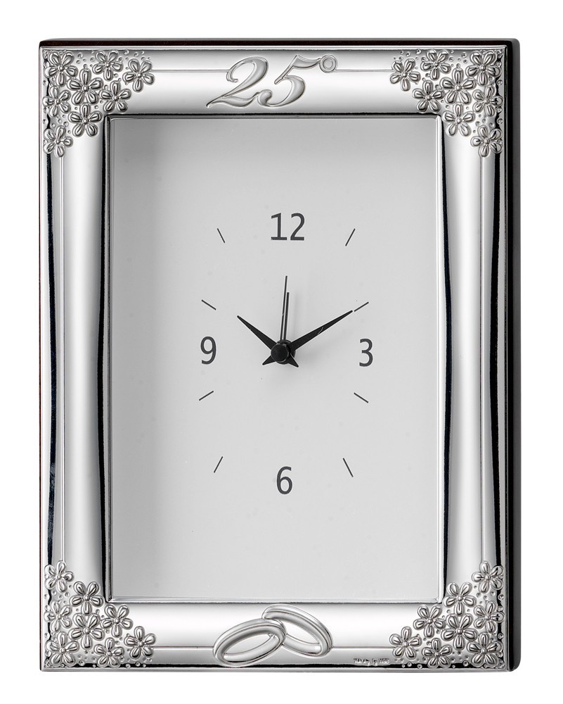Precioso Reloj 25 aniversario 9x13 Personalizado Para Bodas Plata, decorado y acabado en plata Bilaminada de Primera Ley 925.
