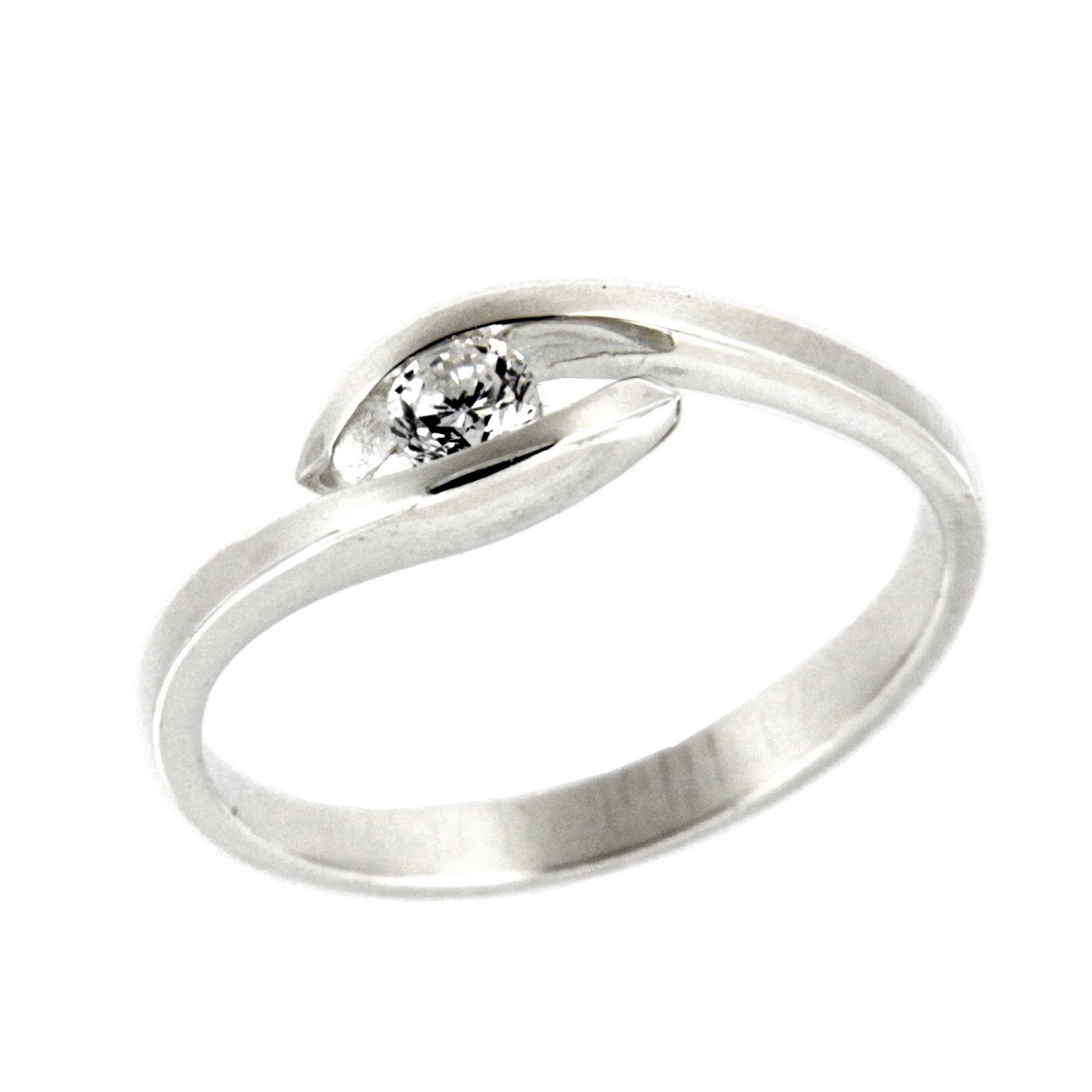 Solitario Fabricado en Oro Blanco 18 kt. Engastado en Tensión con un Diamante Natural Talla Brillante H SI 0,15 Quilates