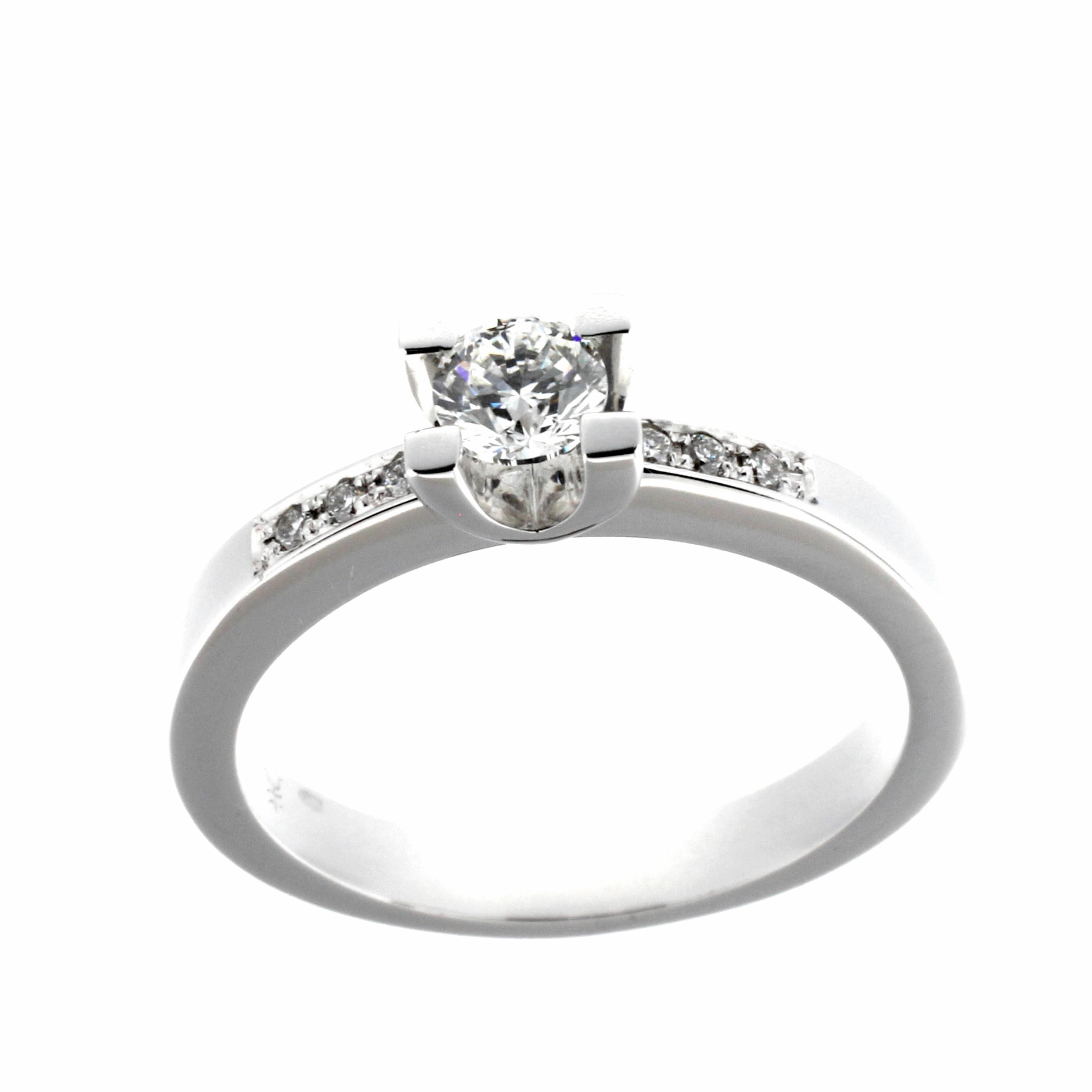 Solitario Hecho a Mano por Artesanos Joyeros. Centro Montado en Garras con un Diamante Natural Talla Brillante HVS 0,31 Quilates y Brazo con 6 Diamantes Naturales Talla Brillante HVS 0,04 Quilates