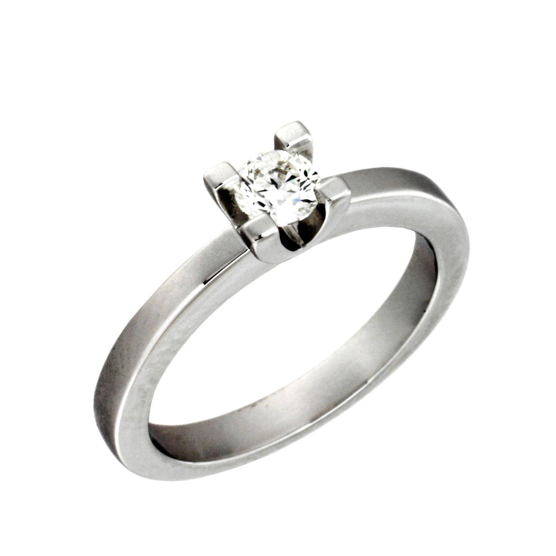 Solitario Hecho a Mano por Artesanos Joyeros. Centro Montado en Garras con un Diamante Natural Talla Brillante HVS 0,30 Quilates