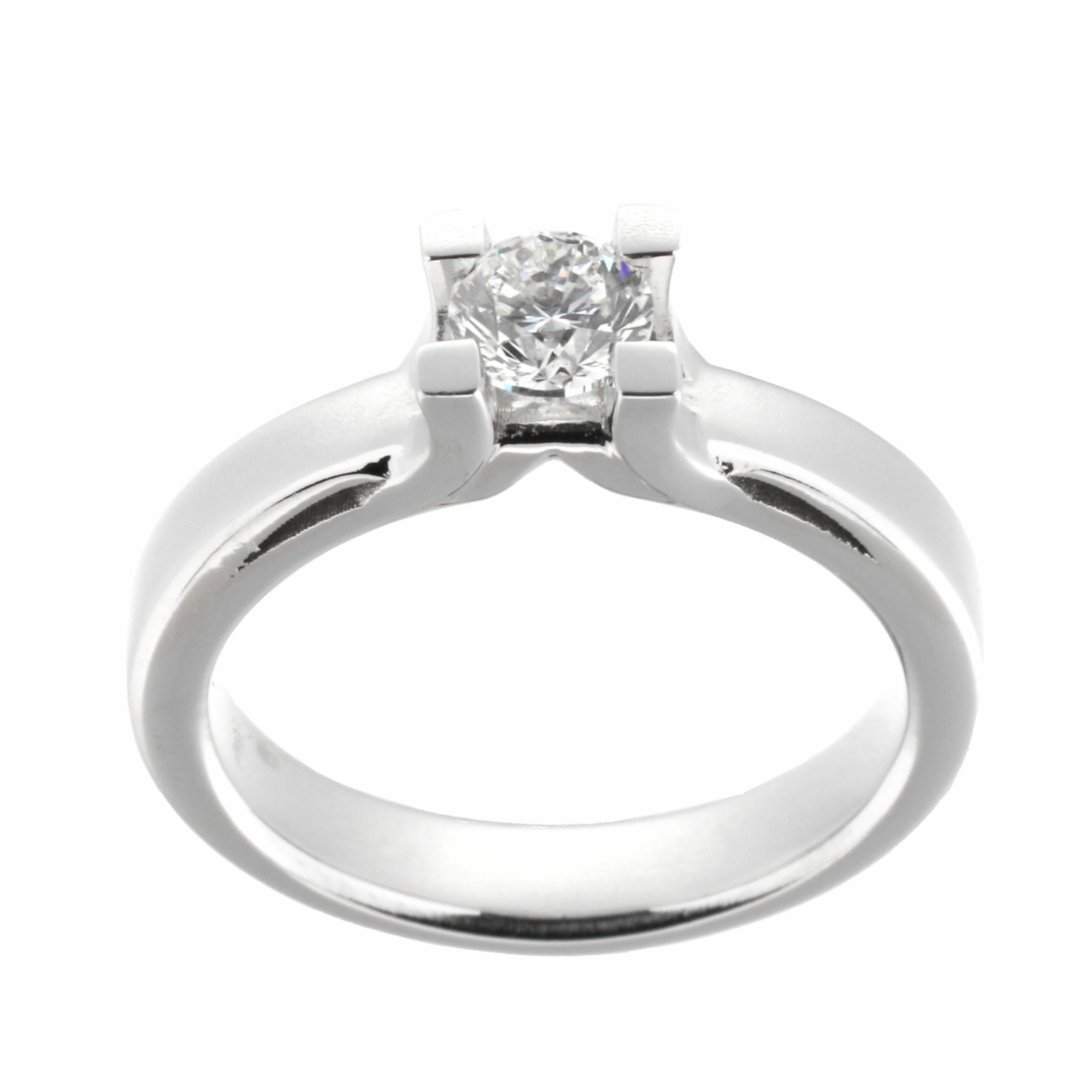 Solitario Hecho a Mano por Artesanos Joyeros. Centro Montado en Garras con un Diamante Natural Talla Brillante HVS 0,47 Quilates