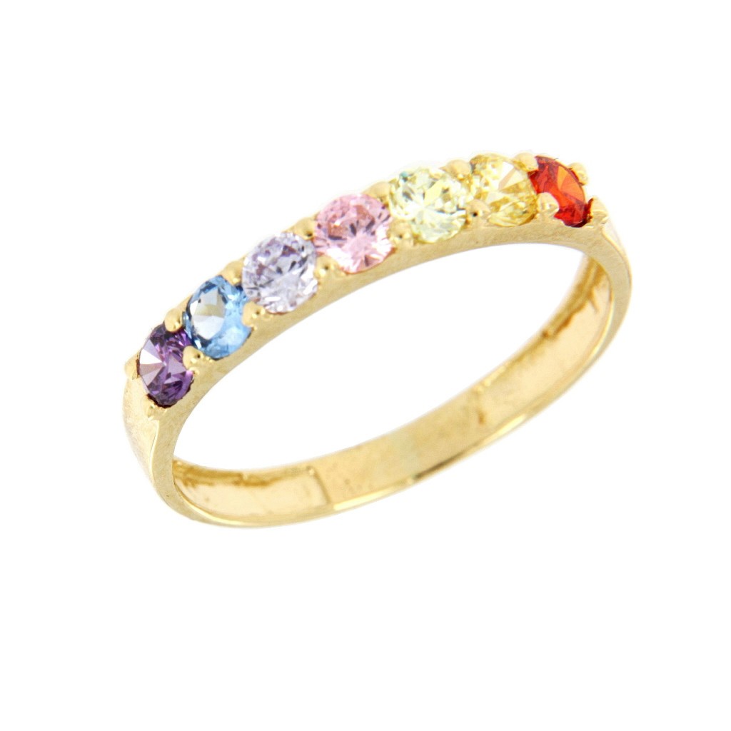 Sortija Media Alianza en Garras de 3 mm. con 7 Circonitas de Colores.