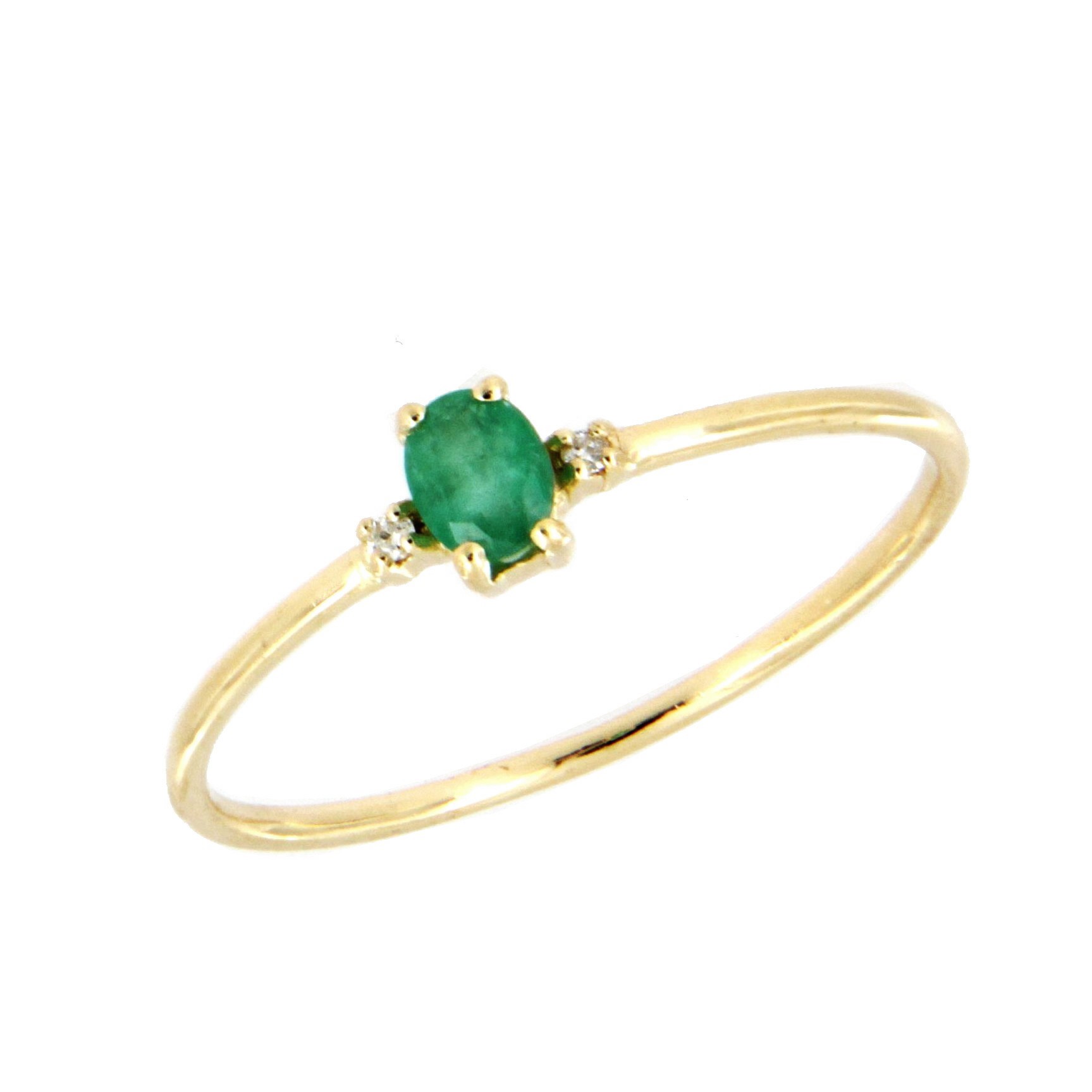 Sortija con Esmeralda Natural de 4 x 3 mm y dos Diamantes Naturales Talla Brillante H SI 0,016 Quilates.