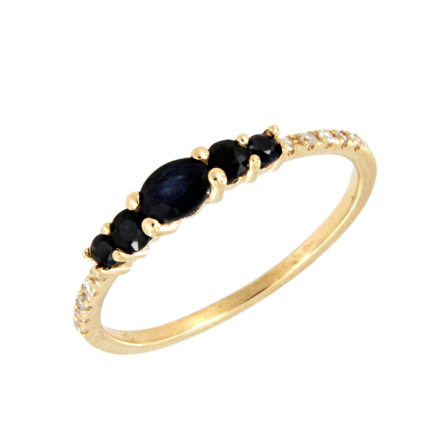 Sortija Media Alianza con 5 Zafiros Naturales y 10 Diamantes Naturales Talla Sencilla Calidad H Si 0,05 Quilates.