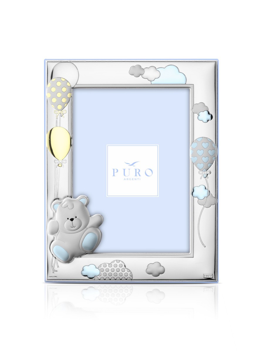 Venta en oferta de Marco fotos personalizado oso 9x13 celeste, grabado de nombre y fecha gratis.