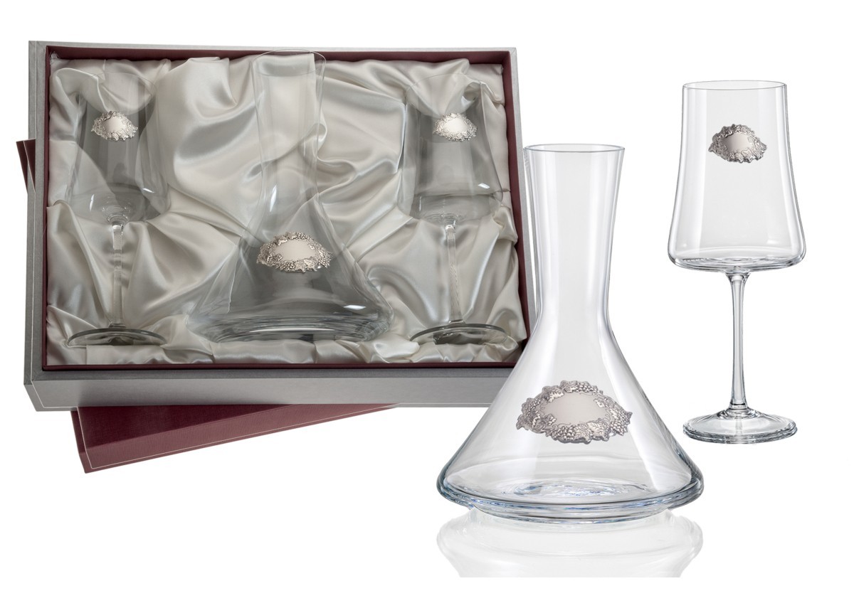 Juego de vino personalizado con decantador decoración plata bilaminada 925