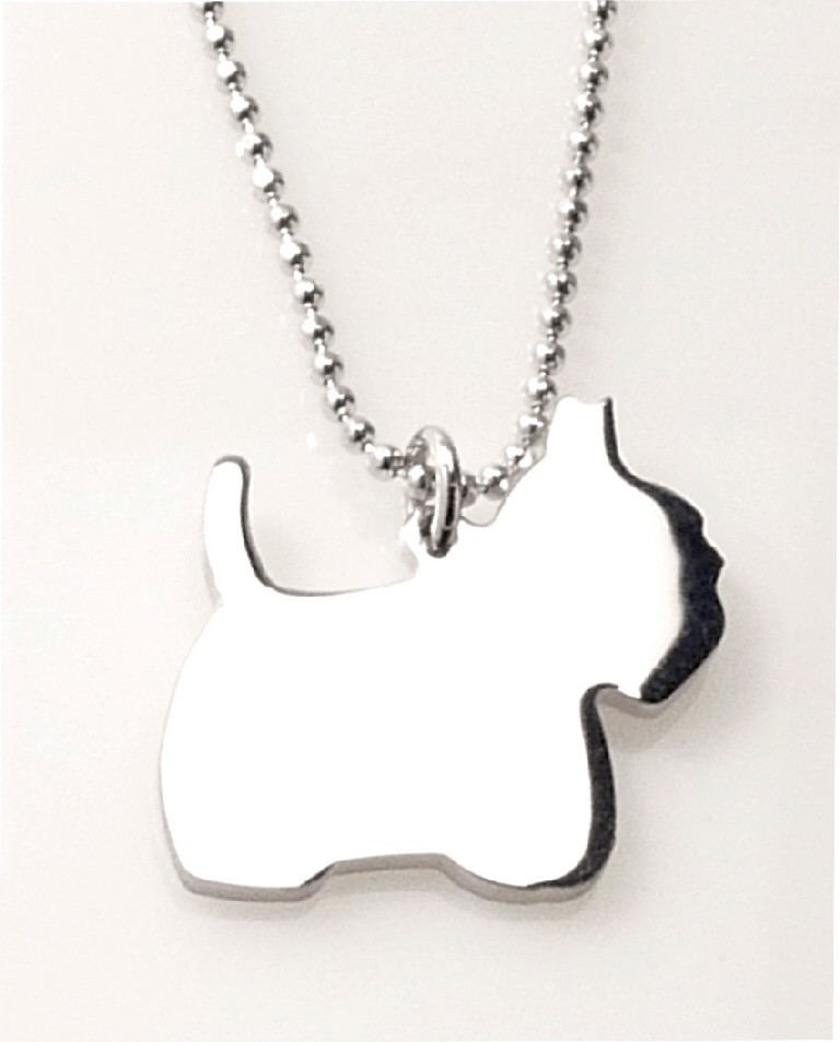 Gargantilla en plata de ley rodinada, cadena de bolas facetadas de 40cm ampliable a 44. Colgante de westie personalizable de 20mm.