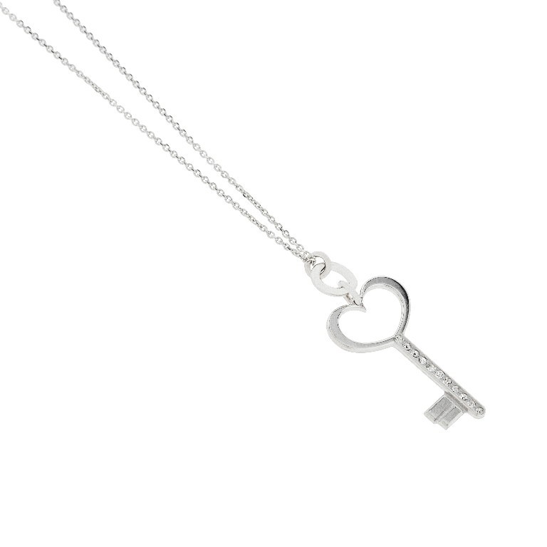 Gargantilla de plata rodiada con un colgante de una bonita llave de la felicidad con circonitas engastadas. De la nueva coleccíón de temporada. Mide 39cm de largo ampliable a 43cm