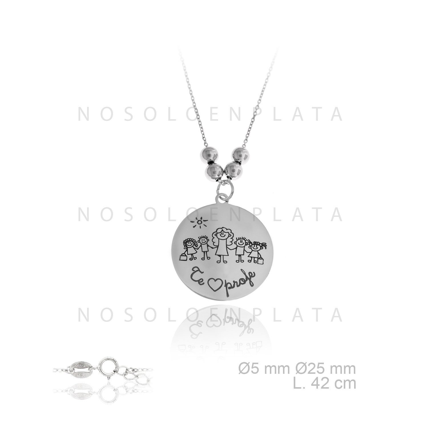 Collar de plata con colgante grabado con mensaje de agradecimiento para profesoras. Lleva cadena añadida en cierre para regular el largo del collar.