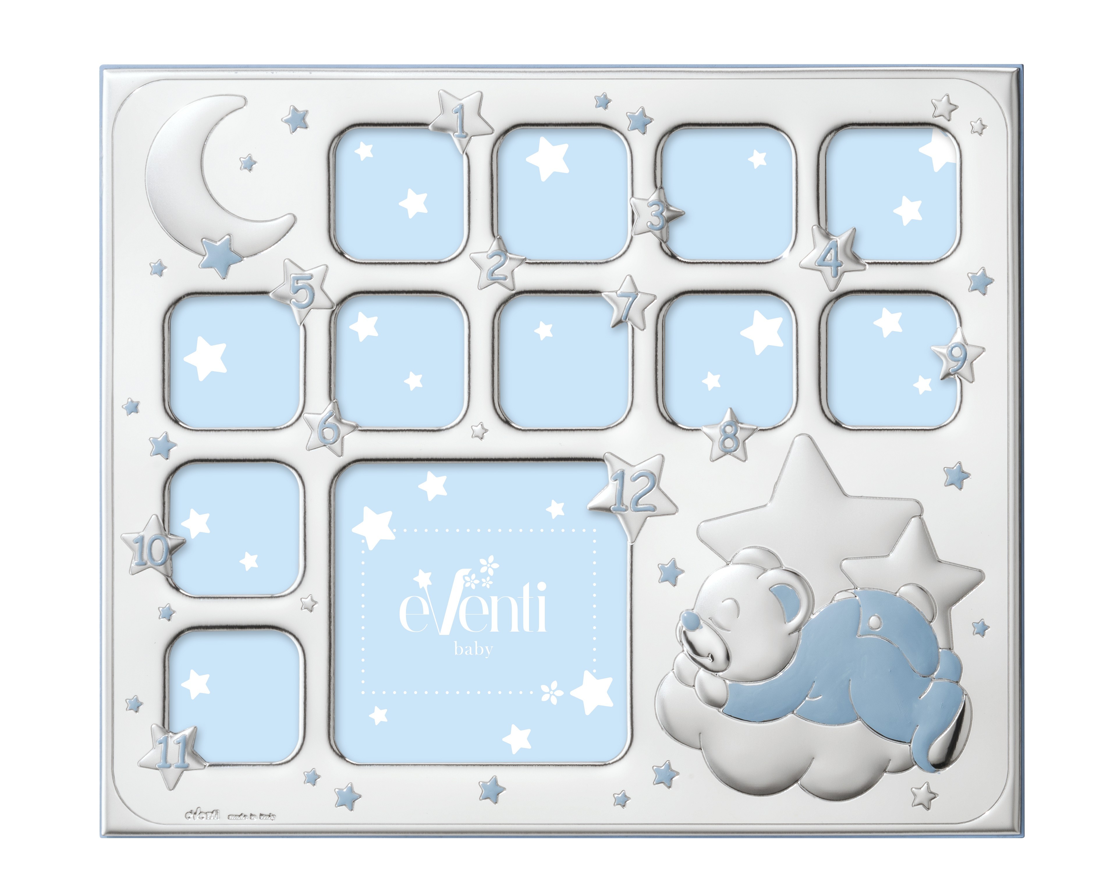 Marco fotos personalizado primer año oso nube celeste 27x33